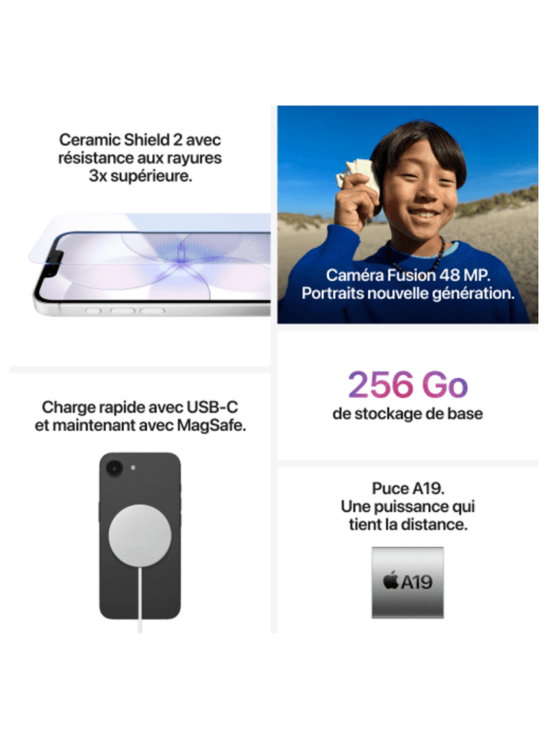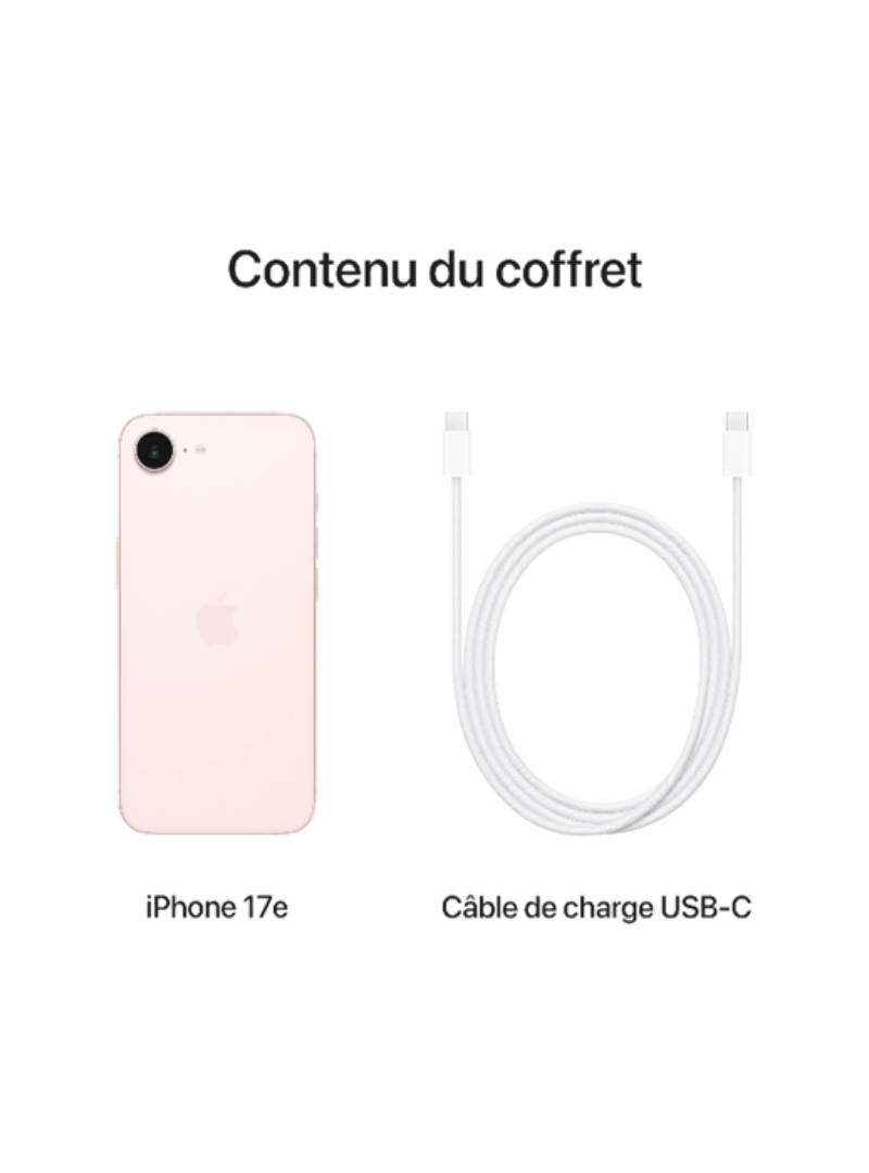 L'iPhone 17e est fourni avec un câble USB-C. Un chargeur compatible USB-C est nécessaire pour pouvoir le charger. Avec cet adaptateur d'origine Apple d'une puissance de 20W, vous pourrez recharger rapidement votre nouvel iPhone.